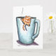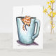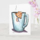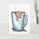 A cat heads for the comfort of a warm cup...on this feel better soon card! Original artwork handmade by Sue Clancy using ink and gouache.
