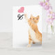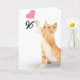 Gato dorado tabby con globo de corazón rosa por 96 años sobre fondo blanco. Se puede cambiar el color de fondo.