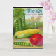 Imagen maravillosa de un catálogo vintage de semillas de plantas vegetales de 1909 con verduras y un granjero en el campo de maíz.