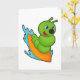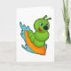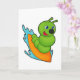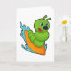 Tarjeta Caterpillar como surfista con tabla de surf