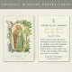 Con una hermosa imagen católica tradicional de la imagen de los esponsales de María y José con un borde dorado decorativo acentuado con flores de varios colores y un fondo de encaje blanco. Hay una oración en el reverso para los novios. Todo el texto y las fuentes se pueden modificar.