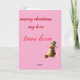 Celebra la magia de las fiestas con esta elegante tarjeta de Feliz Navidad 2026. Diseñada sobre un vibrante fondo rosa, presenta un emblema blanco de "Feliz Navidad" bellamente detallado, combinado con un mensaje romántico: "Amor con historia de Navidad 2026".
