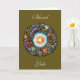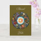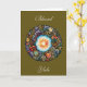 La imagen en la parte frontal de esta tarjeta muestra la corona de Yule que incorpora la hiedra, el muérdago y el abeto. En el centro está el Sol alrededor del cual gira toda la vida.