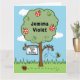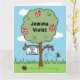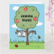 Una dulce tarjeta de saludos para celebrar un cumpleaños, que puede ser personalizada con el nombre, la fecha y el cumpleaños numerado. La carta cuenta con una colorida escena en el jardín con un manzano, un abejorro zumbando por ahí y un pájaro silvestre en el suelo.