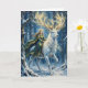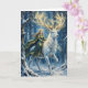 Journey into the mystic winter woods with this enchanting fantasy illustration. The artwork features a Celtic goddess or elf queen riding a majestic white stag with glowing golden antlers through a snowy forest. Rendered in a textured impasto oil painting style, this design captures the magic of Yule and ancient folklore. The white stag is a symbol of spiritual quest and wonder. A perfect gift for fantasy lovers, hunters, or fans of mythology. Customize this magical scene with a family name or holiday greeting using the design tool.