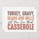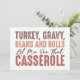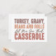 Este divertido y festivo diseño de Acción de Gracias presenta la frase juguetona "Pavo, salsa, frijoles y panecillos, déjame ver esa cazuela" en un diseño audaz y llamativo. El texto está organizado en una mezcla de fuentes bloqueadas y desgastadas y escritura elegante, creando un efecto visual dinámico y atractivo. La paleta de colores incluye tonos cálidos y terrosos como marrones, naranjas y rojos, que reflejan perfectamente la atmósfera acogedora y reconfortante de una fiesta de Acción de Gracias. La textura desgastada del texto añade un toque rústico y vintage al diseño, lo que lo hace ideal para las fiestas.