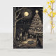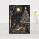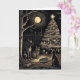 Una carta de Navidades encantadora con una acogedora escena de un perro alegre y dos gatos juguetones compartiendo un plato festivo. Este encantador ilustracion, situado en un entorno de luces de vacaciones brillantes y nieve suave, capta el espíritu de unión y amor durante las vacaciones.