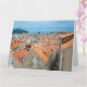 Pintura de tejados rojos y mar azul desde la muralla de la ciudad de Dubrovnik en Dubrovnik, Croacia. Vista desde arriba del casco antiguo.