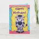 Animales desfile Cute Cow Invitaciones de cumpleaños personalizadas, tarjetas, regalos, fiestas y mucho más son para el lado divertido de usted con nuestro arte original de una caprichosa vaca blanca y negra parada en un campo de hierba con un cielo amarillo y naranja y un divertido borde violeta. Pintado por el talentoso artista infantil Traci Van Wagoner, nuestro divertido equipo de fiesta de animales de granja es perfecto para los amantes de las vacas de todas las edades. En muchos de nuestros extravagantes aparejos de fiesta animal en el patio, verán a la linda vaca venir y marcharse con esta divertida obra de arte de la cabeza de la vaca linda en el frente y la cola de la vaca Holstein en la parte trasera. Únete al Desfile de Animales y lanza a tu hijo un charlatán lleno de animales con nuestras divertidas cabezas y nuestra fiesta de cumpleaños con la temática de las vacas de cola. Para empezar con tu fiesta, envía a todos los amigos de tu hijo una invitación que no pueden rechazar. ¡Que pases un tiempo inolvidable!