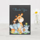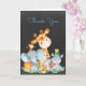 Esta adorable tarjeta de agradecimiento con adorables animales de safari de la jungla de agua con hojas de jungla y frutas en el fondo de una pizarra es la perfecta para cualquier ducha de bebé o evento especial de estilo. Personalice su propio texto especial y úselo al fiesta o al evento que elija. Artículos que coincidan, como invitación a una ducha de bebé, sellos postales, álbum de fotos, imán, etiqueta de dirección, poster, banner, tarjetas de agradecimiento, pegatinas de agradecimiento y más también están disponibles en nuestra tienda.
