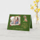 Encantador diseño de saludos navideños con acuarela adorable decorador de hadas, esquinas de poinsettia roja, "Feliz Navidad" y "La" caligrafía, tu foto familiar, sobre un fondo verde del bosque con falsos copos de nieve de oro. Impresionará a todos con este diseño exquisito y único. Utilice la herramienta Personalize para añadir su información y sus más sentidos deseos. Más ideas en la colección de fotos de mis Navidades.