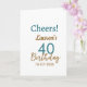 Tarjeta Cheers 40th birthday name date brown turquoise sim