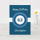 Una tarjeta de cumpleaños 63 azul personalizada para él, que puedes personalizar fácilmente con la edad que necesitas junto con su nombre en la parte delantera de la tarjeta. Puede personalizar fácilmente el mensaje de la tarjeta interior si lo desea. Esta tarjeta personalizada de cumpleaños número 63 le haría un gran placer.