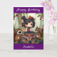Una dulce tarjeta de cumpleaños personalizada de cuento de hadas con una página de color interior. Una linda hada personalizado chibi comiendo moras con sus amigos del bosque, un mapache y una ardilla.