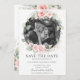 Destaca tu foto pre-boda con esta chic tarjeta de foto para guardar la fecha. Con una hermosa y delicada corona floral de color rosa y follaje verde en acuarela. Personalízala con tus detalles de manera fácil y rápida, simplemente presiona el botón de personalizar para reorganizar y dar formato al estilo y ubicación del texto.