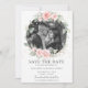 Destaca tu foto de pre-boda con esta chic tarjeta de guardar la fecha con foto. Con una hermosa y delicada corona floral de rosa pastel y follaje verde en acuarela. Personalízala con tus detalles de manera fácil y rápida, simplemente presiona el botón de personalizar para reorganizar y dar formato al estilo y ubicación del texto.