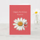 Tarjeta Chic Red White Daisy Flower Ladybug Birthday