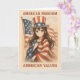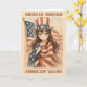 Esta tarjeta combina el estilo de anime vintage con el orgullo patriótico, con un alegre chica envuelto en la bandera estadounidense y con un gorra estrellado contra un telón de fondo rojo, blanco y azul. El frente resalta los valores y libertades duraderos que definen a la nación, mientras que el interior ofrece espacio para personalizar tu mensaje, ya sea que quieras celebrar la resiliencia, la esperanza o los ideales de libertad y justicia. Perfecto para todo aquel que aprecie la adopción moderna y edificante del espíritu americano, esta carta es una forma única de compartir su aprecio por los principios que nos unen a todos.