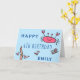 Tarjeta de cumpleaños feliz Chica de animales de cangrejo rosado. Este diseño viene con dibujos de lindos animales de mar rosados y textos de feliz cumpleaños. Añade tu nombre, edad y mensaje dentro.