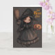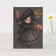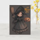 Tarjeta Chica de bruja linda, cuarto y calabaza Halloween
