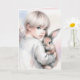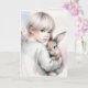 Niña acuarela sosteniendo su conejo mascota por un cumpleaños de chica, comunión, confirmación, bautismo, dedicación u otro acontecimiento religioso. El mensaje interno se puede cambiar.