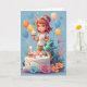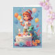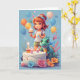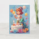 Tarjeta Chica de dibujos animados con pastel de cumpleaños