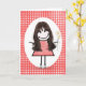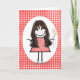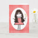 Tarjeta Chica de palitos de cumpleaños en gingham rojo