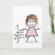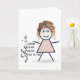 Chica de palos con pelo, gafas y vestido de flores en un fondo blanco para el cumpleaños de la hermana. Se puede cambiar el color de fondo.