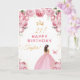Tarjeta Chica de pelo de brunette rosa Floral Feliz cumple