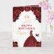 Tarjeta Chica de pelo marrón oscuro rojo floral feliz cump