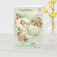 Tarjeta Chica de recién nacido con ángeles, cruz, rosas ro