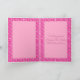 Esta divertida tarjeta de cumpleaños presenta una imagen gráfica de un lindo abejorro rosa con rayas rosas brillantes, ojos negros, antenas rosadas y piernas negras. Tiene alas azul y blanco bonito. La abeja está sentada en medio de un girasol rosado bonito. La flor tiene un tallo verde y tres hojas. El mensaje "Chica de Bee Day" aparece esparcido en las tres hojas. El fondo está compuesto por un diseño de abeja rosa brillante. También hay un saludo de personalizable en la parte delantera y un mensaje dentro de la tarjeta.