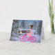 Tarjeta Chica Linda En Bicicleta Rosa Invierno