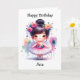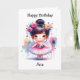 Tarjeta de cumpleaños personalizada para una niña pequeña. Bonito acuarela pequeña bailarina chica asiática rodeada de flores rosadas y violetas. Adentro hay una página de color. Todo el texto de la tarjeta se puede cambiar en el área de personalización.