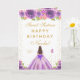 Esta elegante y glamurosa tarjeta de cumpleaños de sweet sixteen se puede personalizar con un nombre o título como hija, nieta, sobrina, amiga, etc. El diseño presenta a una hermosa princesa con cabello castaño y piel clara con un vestido de baile morado. El texto combina letra manuscrita y fuentes modernas sans serif para un aspecto clásico y sofisticado. Los arreglos florales, las mariposas y el confeti dorado crean la mezcla perfecta de rústico y chic.