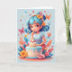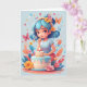 Carácter chica lindo, con torta de cumpleaños. En blanco para tu mensaje personal, y puedes añadir tu propio saludo al frente.