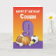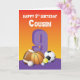 Para hacer un saludo por su noveno cumpleaños que viene pronto, deberías darle a tu querido primo esta tarjeta con un tema relacionado con el deporte y un divertido mensaje interno.