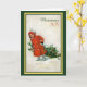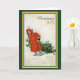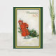 El anverso de esta tarjeta de felicitación a los Navidades muestra una imagen vintage de una niñita vestida con un abrigo rojo de invierno y un gorra, que está tirando de la nevada para decorarla. El texto rojo y verde que coincide dice "Navidades JUEGOS". La imagen está bordeada por un verde oscuro con un marco dorado y verde. El interior de la tarjeta tiene el fondo verde correspondiente a la izquierda. El otro lado es blanco, con campos de texto personalizado. Celebra a los Navidades a la antigua con esta hermosa carta, y haz que diga lo que quieras.