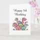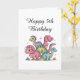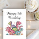 El diseño de esta adorable acuarela incluye dinosaurios acuarelas en diferentes tonalidades de morado, rosa y verde. Este diseño de tarjeta de cumpleaños de dinosaurios también incluye la frase "¡Feliz cumpleaños!" en la parte delantera de la tarjeta. El interior de la tarjeta incluye un lugar para agregar un nombre así como la frase "¡Espero que tu cumpleaños sea T-riffic!"