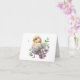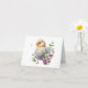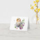Tarjeta Chick acuarela con flores moradas en BLANCO