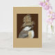 tarjeta con pollo usando un sombrero superior de materiales de anidación.