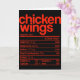 Tarjeta Chicken Wings Nutrition Fact Funny Thanksgiving Ch