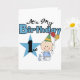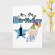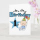 Camisetas para bebés de primer cumpleaños, pantalones de vestir, tarjetas, pegatinas, imanes, bolsas, y otros artículos y prendas de vestir de primer cumpleaños con un niño en un pañal azul y un gorra fiesta, ¡una gran estrella y globos!