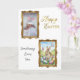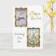 The front features a unique “double-frame” design with ornate, ancient gold frames. The top is ready for your child’s photo, while the bottom showcases a sunny watercolor meadow scene with a sweet Easter rabbit.