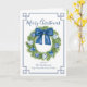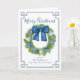 Envíe sus deseos de vacaciones atemporales con esta tarjeta de vacaciones Chinoiserie Wreath, donde el azul y el blanco clásicos se encuentran con la vegetación festiva. La decoración es elegante, con una cortina de color agua adornada con una decoración azul y blanca y atada con un bonito arco azul, enmarcado por un borde decorativo. Personalizado con su propio saludo y nombre, es la manera perfecta de compartir sus cálidos deseos en un estilo tradicional y a la vez preppy. Una bonita tarjeta de mantenimiento para la familia, los amigos o los seres queridos que aprecian el encanto de las vacaciones refinadas.