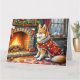 Tarjeta Chinook Sitting by Fireplace with Christmas Lights