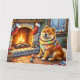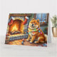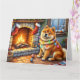 Tarjeta Chow Chow Sitting Fireplace with Christmas Lights