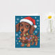 Tarjeta Christmas Dachshund Lights Santa Hat Holiday Dog L
