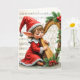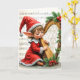 A cute Christmas sprite delicately playing a harp, set against a backdrop of beautiful sheet music