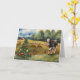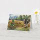 A charming Season's Greetings card featuring a cow standing in her pasture with a decorated Christmas tree. A red barn and falling snow add to the cozy, country feel of the scene.
